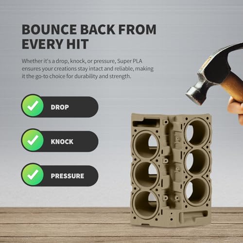【Propriétés élevées】 Le filament Super PLA + améliore considérablement la résistance à l’impact, a des propriétés mécaniques que le PLA ordinaire n’est pas amélioré et la ténacité de l’acier est équilibrée. En même temps, Super PLA + a également les performances d’impression faciles du matériau PLA, la combinaison des deux points en fait un excellent substitut de l’ABS (lorsque la résistance à la chaleur du PLA peut répondre aux exigences)