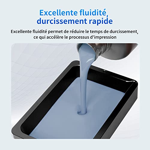 【Excellente Fluidité et Durcissement Rapide】 Grâce à ses excellentes propriétés d’écoulement, la résine 3D peut être moulée et durcie rapidement selon la forme souhaitée, permettant ainsi des impressions plus rapides.